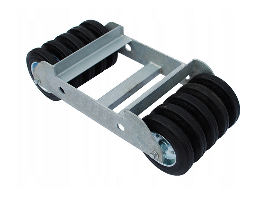 Koła: 10 kółek po 5 na stronę, o wytrzymałości 230kg każde. Kółka gumowo – metalowe, ułożyskowane
